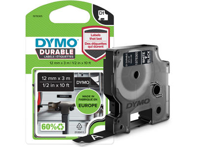 Labeltape, 12mm x 5.5m, Sort på Hvid, 1 rulle, Dymo Rhino Industri