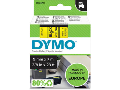 Labeltape, 24mm x 7m, Sort på Gul, 1 rulle, Dymo D1 53718