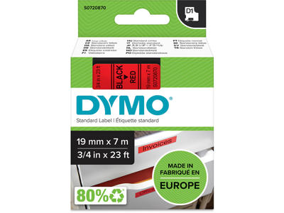 Labeltape, 19mm x 7m, Sort på Rød, 1 rulle, Dymo D1 45807