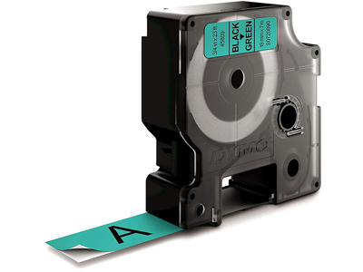 Labeltape, 19mm x 7m, Sort på Grøn, 1 rulle, Dymo D1 45809