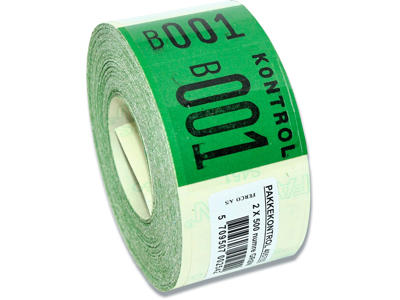 Etiketter, 40x57 mm, Hvid-Grøn, 1 rulle, Ferco Pakkekontrol 2-delt