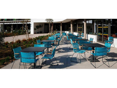 HOUE Click stol med armlæn, Sorte lameller, Mørkegrå stel
