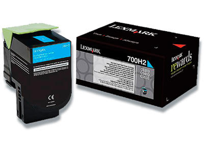 Toner, 802HC, Cyan-blå, 3.000 sider, Lexmark 80C2HC0