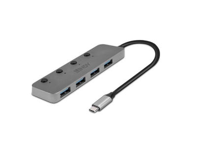 Lindy 43388 interface hub USB 3.2 Gen 1 (3.1 Gen 1) Type-A 5000 Mbit/s Sort, Grå
