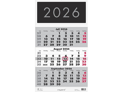 Vægkalender, 2026, Kæmpe, Moderne, 6 måneder pr. side, 100x70 cm, Mayland
