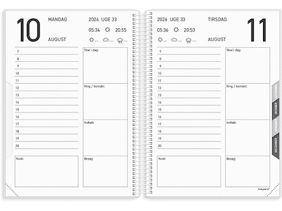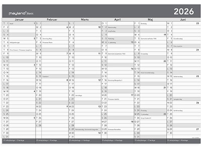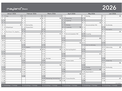Kalender, 2026, Dag, 1 dag pr. side, Støvblå, Mayland