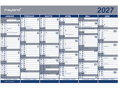 Kalender, 2027, Time, 1 dag pr. side, Blå, Mayland