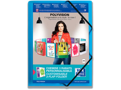 Samlemappe, 3 klapper, 2 elastikker, Hvid, Oxford Polyvision