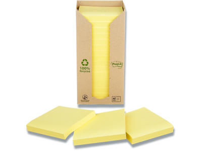 Memonotes, 76x76 mm, Gul, 16 blokke, Post-it Recycled