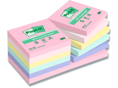 Memonotes, 76x76 mm, Assorteret Pastel rainbow, 16 blokke, Post-it Recycled