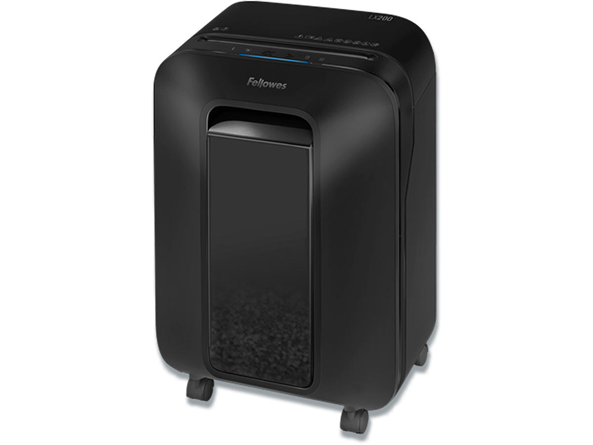 Fellowes LX200 er en dokumentmakulator, der passer godt på et lille/privat eller mellemstort kontor med et ret stort makuleringsbehov med et højt sikkerhedsniveau. Makulerer op til 12 ark ad gangen i meget små 4x12 mm strimler (Mini cut), sikkerhedsklasse P-4.