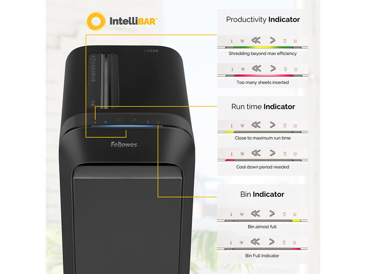 Fellowes LX220 med 100% Jam-Proof Technology har lang driftstid og er velegnet til et lille eller mellemstort kontor med et stort makuleringsbehov og højt sikkerhedsfokus.