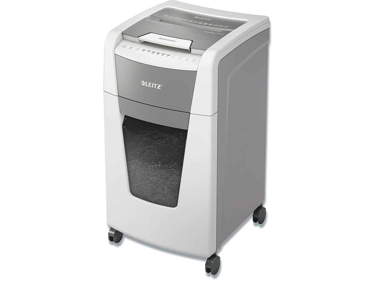 Fuldautomatisk makulator fra Leitz med unik tømningsfunktion uden rod. Så intelligent, at den roligt fungerer på egen hånd, bare indsæt din stak med papirer (inkl. hæfteklammer og papirclips), luk låget og fortsæt med andet arbejde. Ideel til kontorbrug. Fortrolig sikkerhed og fremragende ydelse med denne anti-blokerings, stille autofeed-makulator med lang løbetid (60 min.) Makulerer automatisk 300 A4 ark (80 g) i sikkerhedsniveau P4 (4x30mm) krydsmakuleringsstykker i én omgang ned i den generøse 60L beholder. Enkel betjening ved hjælp af touch-kontrolknapper.