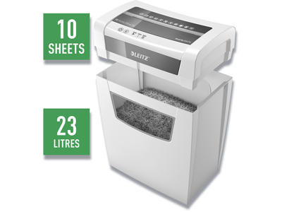 En spændende ny og stilfuld personlig makuleringsmaskine fra Leitz. Kompakt, der passer ind de fleste steder - ideel til hjemmekontoret. Bring stil til dit hjemmekontor med denne blokeringsfri, stille og langtidsløbende makuleringsmaskine. Makulerer 10 ark A4 ned i den store 23 liter beholder. Enkel betjening ved brug af touch kontrolknapperne. Forøg sikkerheden i din dokumentdestruktion med denne DIN P4 makuleringsmaskine.