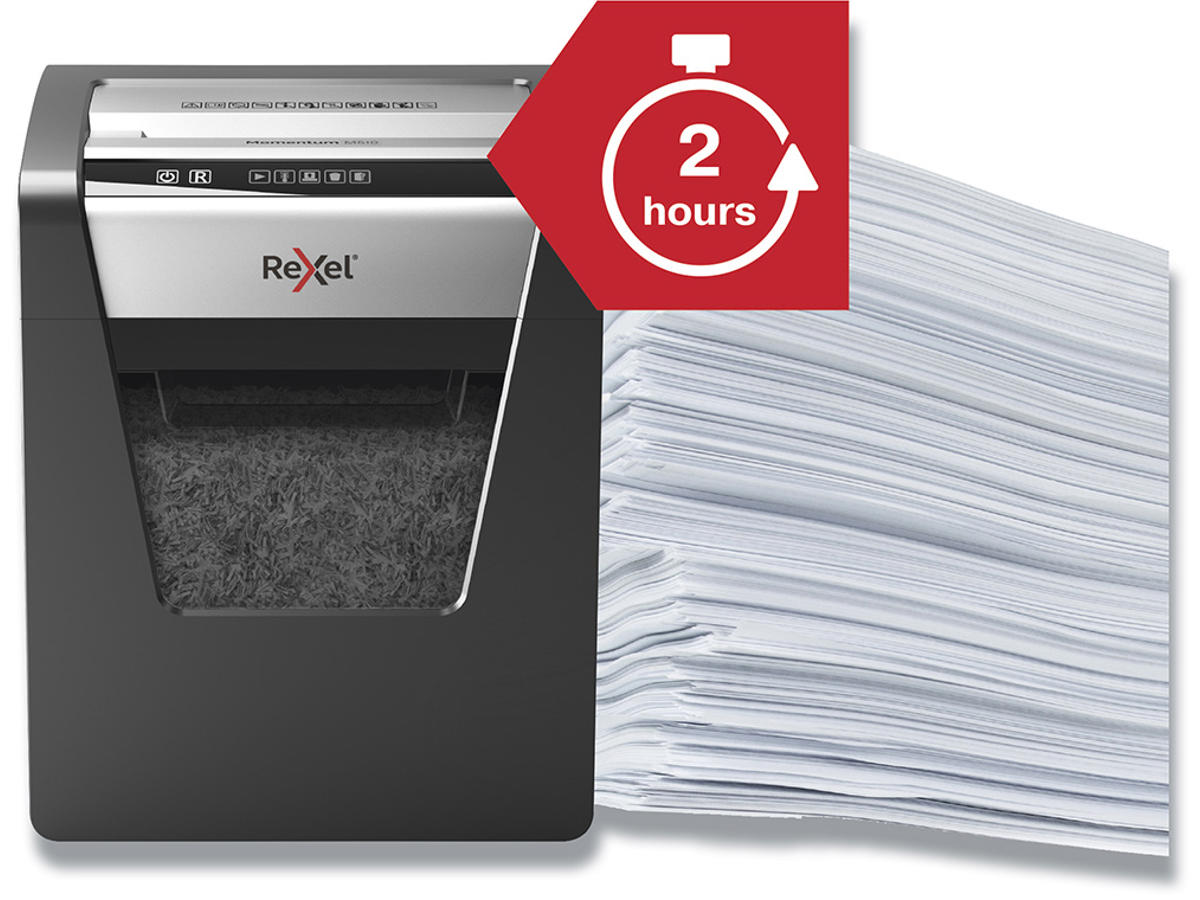 Kraften til at makulere mere! Rexel Momentum M510 makuleringsmaskine makulerer op til 10 ark på en gang med hele 2 timers konstant makuleringstid. Ideel til mindre kontorer. M510 er med antiblokeringsteknologi, der garanterer uafbrudt makulering. P5, mikromakulering i 2x15 mm stykker giver højere sikkerhed og mere makulering, før beholder er fuld. Stille med intuitive touch kontrolknapper, der giver enkel betjening. Med 23 liter beholder med 250 A4 ark kapacitet. Egenskaber