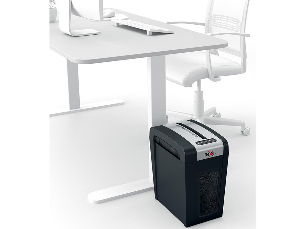 Rexels sortiment af Secure-makulatorer er ideelle til at destruere dine personlige dokumenter og følsomme oplysninger derhjemme. Secure MC6-SL-makulatoren makulerer op til 6 ark A4-papir (80g) på én gang til P-5 (2x15mm) mikromakuleringsstykker. Denne mikromakulerings makulator er perfekt til brug som makulator i hjemmet, eller på et hjemmekontor grundet dens kompakte størrelse og slanke design. Den er også en ideel personlig makulator til kontoret, der passer bekvemt under et skrivebord og fungerer med Whisper-Shred ™ for lavt støjniveau. Designet til let til moderat brug med en kapacitet på 18 liter til mindre hyppig tømning.