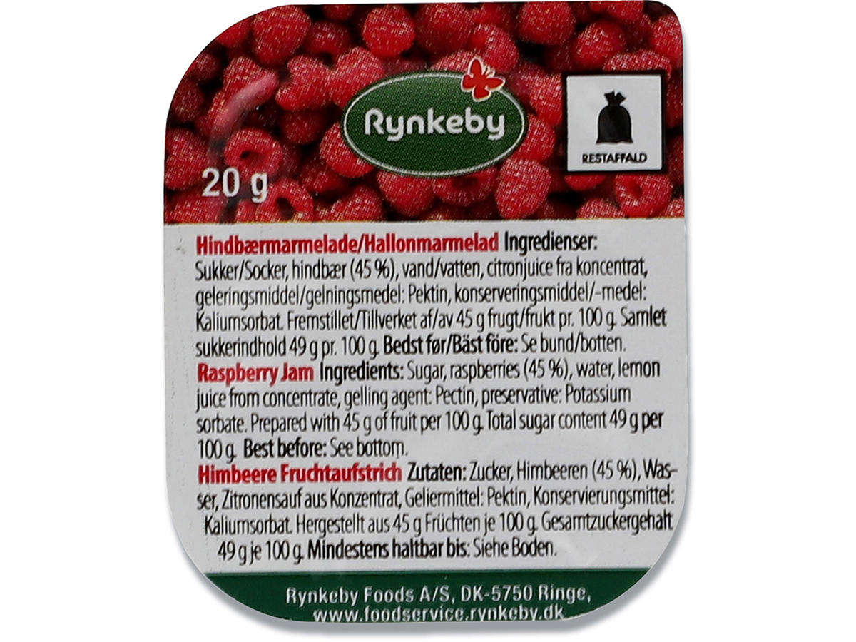 Marmelade, Hindbær, Portionsbæger, 20 g, 132 stk, Rynkeby