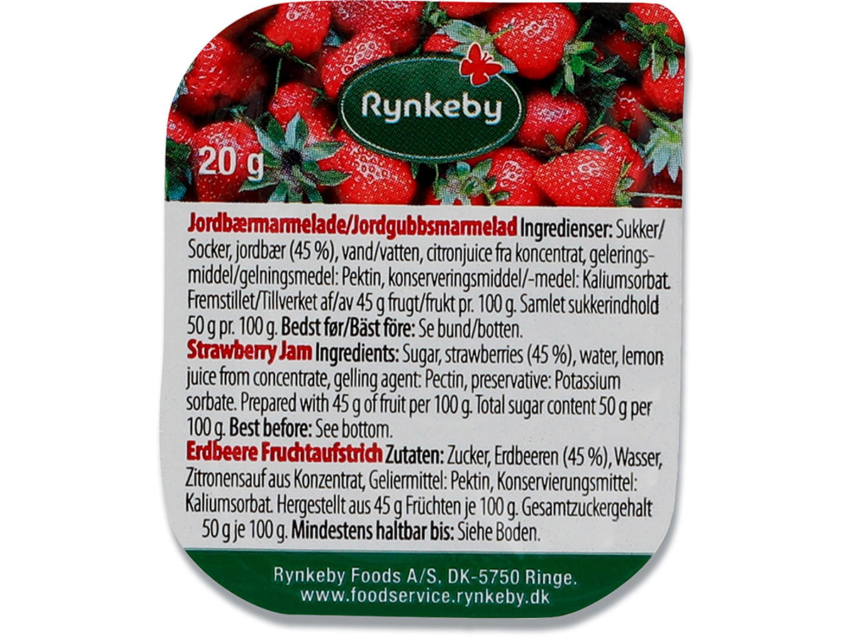 Marmelade, Jordbær, Portionsbæger, 20 g, 132 stk, Rynkeby