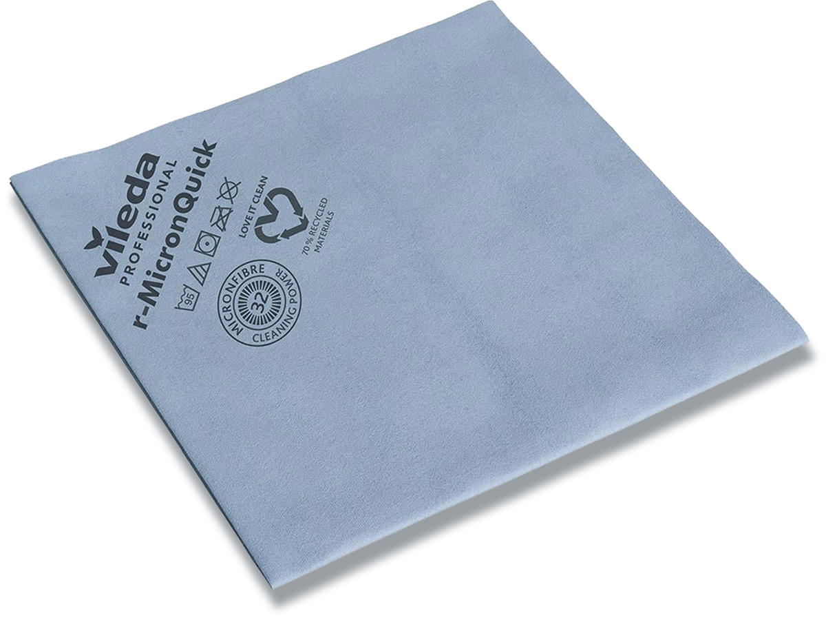 R-MicronQuick er en effektiv og slidstærk klud, der klarer de fleste udfordringer. Markedets hidtil tyndeste mikrofiber, hvilket giver et mere sikkert, hurtigere og renere resultat, samt en endnu bedre bakterieoptagelse. Egner sig til alle overflader og områder – fra hospitaler, ældrepleje og børneinstitutioner til køkkener og kontorer. Ekspert på både synligt og usynligt snavs på alle overflader. 70% genanvendt.
