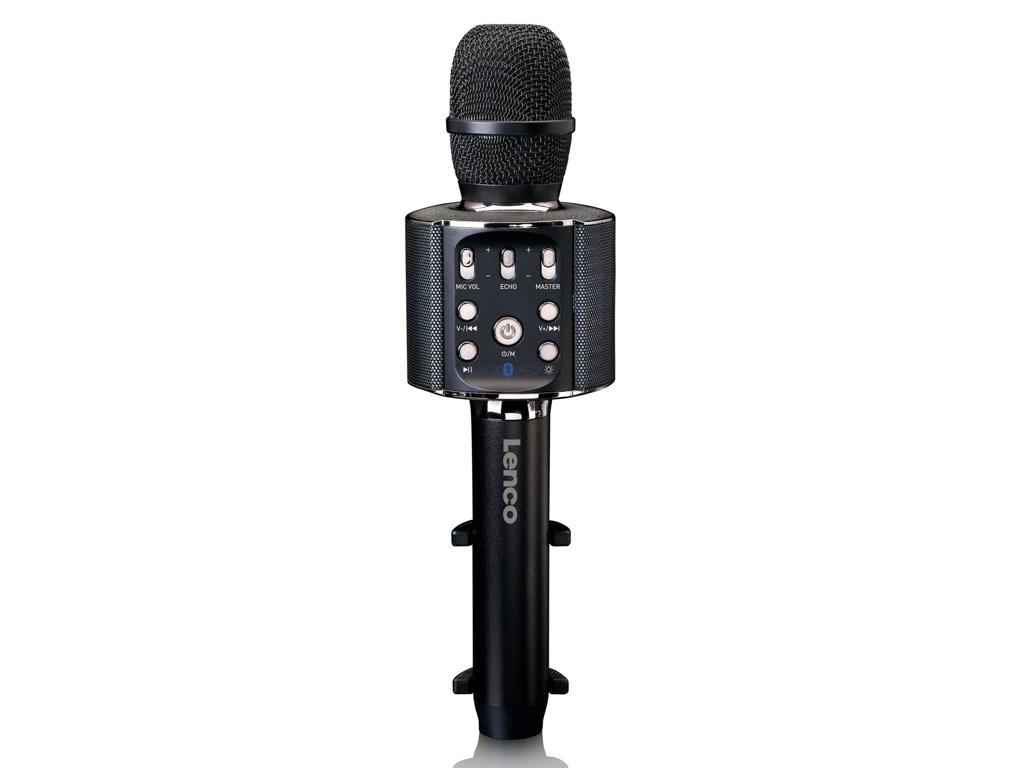• The Lenco BMC-090 is a karaoke microphone with a speaker that works via a Bluetooth® connection. Sing-a-long to your favourite songs and use the light and sound effects on this microphone to make your performance even cooler. This karaoke microphone has a rechargeable battery that lasts up to 8 hours so you, friends and family or acquaintances can enjoy themselves for hours on end. The microphone can also be connected to a HiFi set.