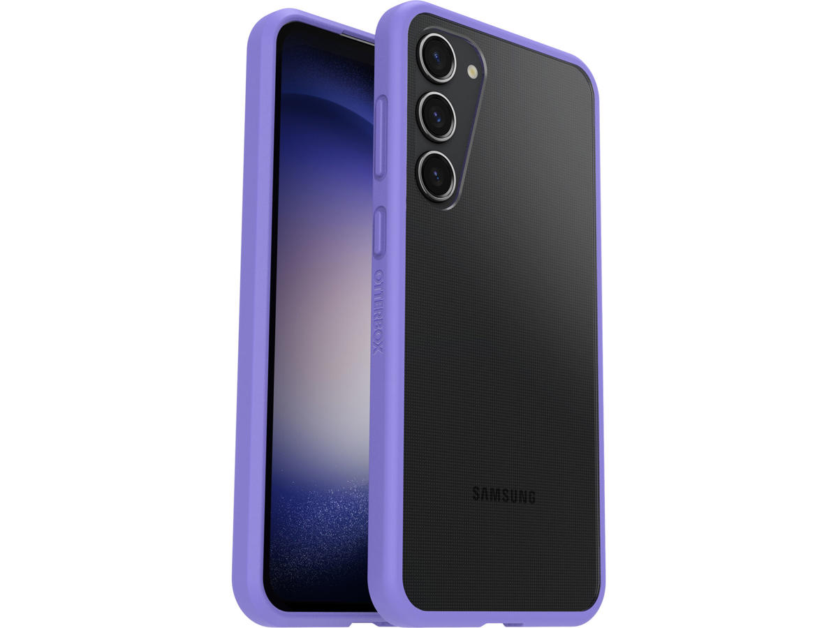 OtterBox 77-91308. Etui-type: Cover, Mærke kompatibilitet: Samsung, Kapabilitet: Galaxy S23+, Maksimal skærmstørrelse kompatibilitet: 16,8 cm (6.6"), Overfladefarvning: Monokromatisk, Produktfarve: Lilla, Transparent