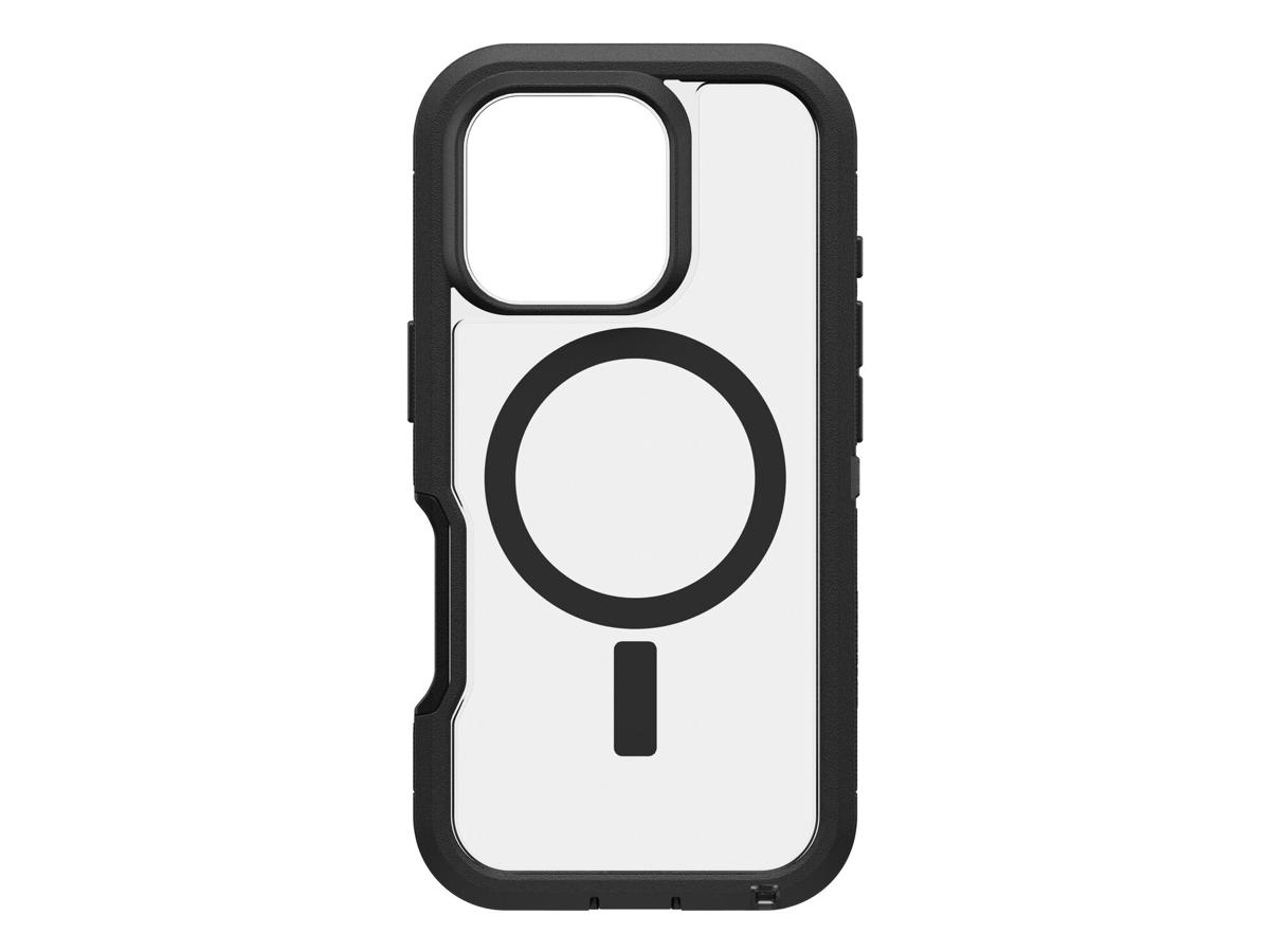 OtterBox Defender XT Clear. Etui-type: Cover, Mærke kompatibilitet: Apple, Kapabilitet: iPhone 16 Pro, Maksimal skærmstørrelse kompatibilitet: 16 cm (6.3"), Overfladefarvning: Monokromatisk, Produktfarve: Sort, Transparent