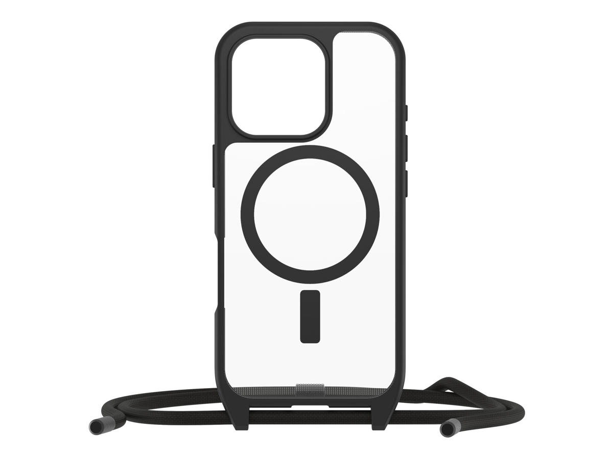 OtterBox React Necklace. Etui-type: Cover, Mærke kompatibilitet: Apple, Kapabilitet: iPhone 16 Pro, Maksimal skærmstørrelse kompatibilitet: 16 cm (6.3"), Overfladefarvning: Monokromatisk, Produktfarve: Sort, Transparent