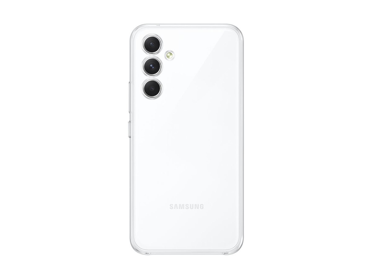 Samsung EF-QA546. Etui-type: Cover, Mærke kompatibilitet: Samsung, Kapabilitet: Galaxy A54, Maksimal skærmstørrelse kompatibilitet: 16,3 cm (6.4"), Overfladefarvning: Monokromatisk, Produktfarve: Transparent