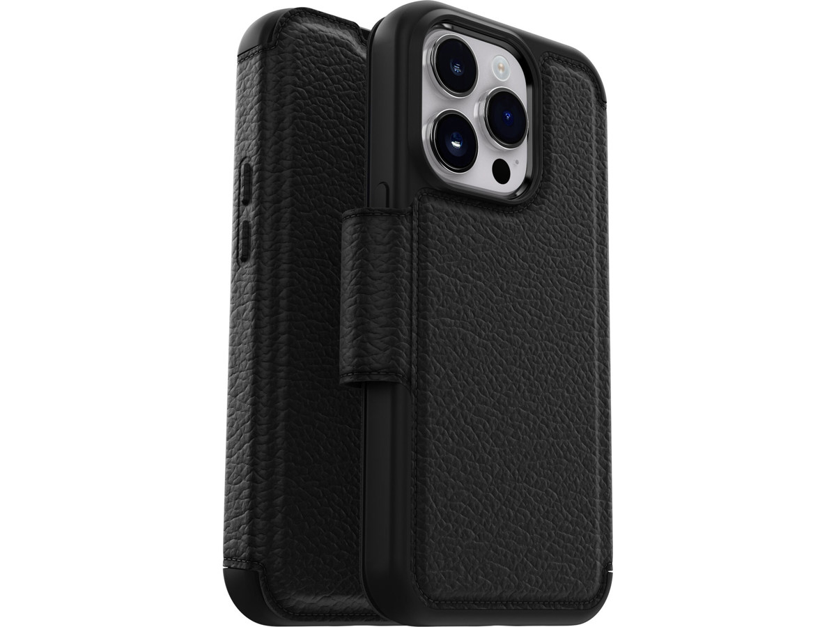 OtterBox 77-88573. Etui-type: Tegnebogsetui, Mærke kompatibilitet: Apple, Kapabilitet: iPhone 14 Pro Max, Maksimal skærmstørrelse kompatibilitet: 17 cm (6.7"), Overfladefarvning: Monokromatisk, Produktfarve: Sort, Antal lommer til kort: 2