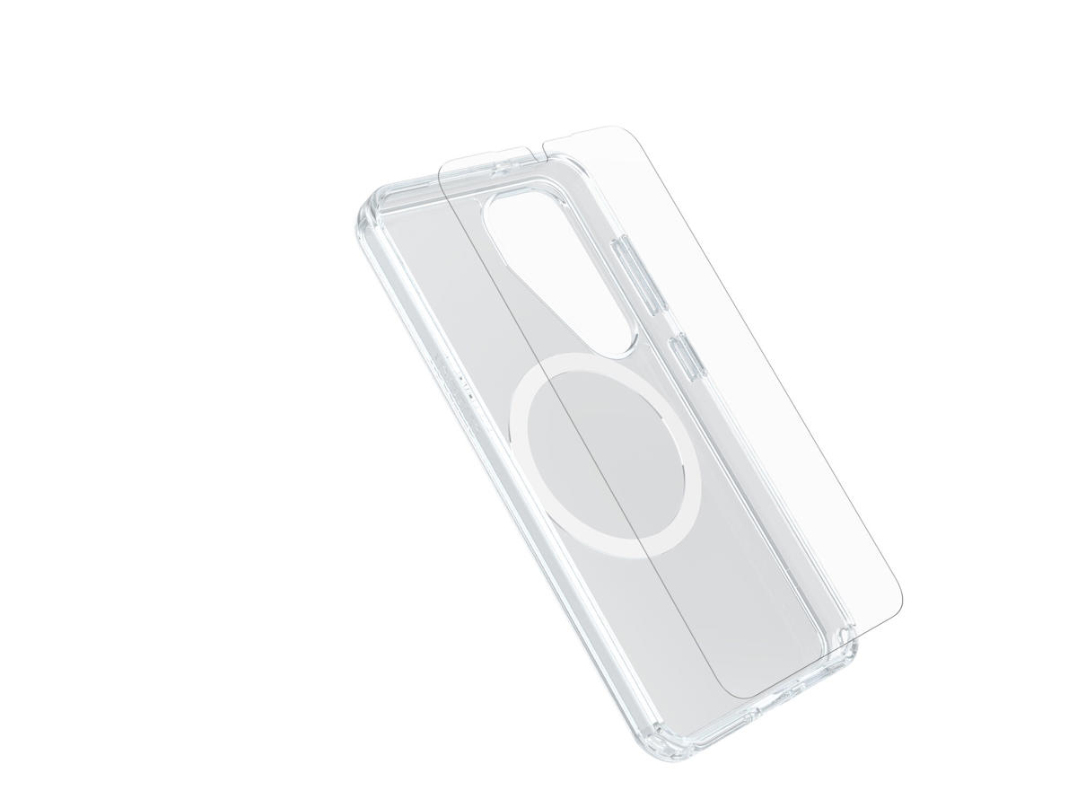 OtterBox Symmetry Series Clear + Premium Glass. Etui-type: Cover, Mærke kompatibilitet: Samsung, Kapabilitet: Galaxy S25, Maksimal skærmstørrelse kompatibilitet: 15,8 cm (6.2"), Overfladefarvning: Monokromatisk, Produktfarve: Transparent