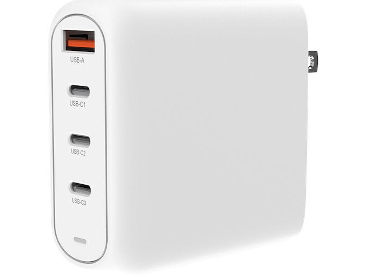 The GaN charger features 3 USB-C ports and 1 USB-A port, granting the ability to fast charge up to four devices concurrently.