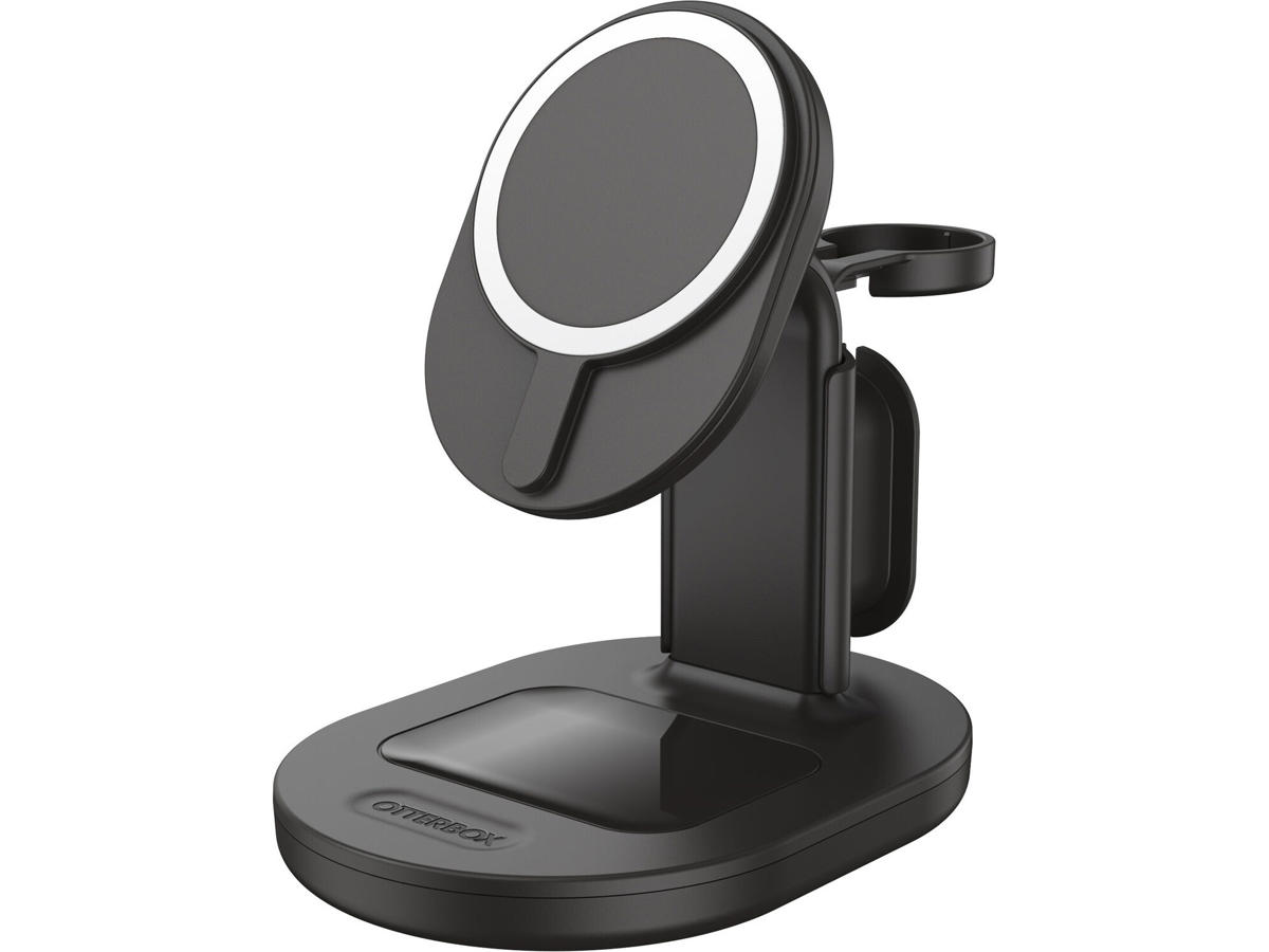 Innovative 3-in-1 Charging Station for MagSafe powers all your Apple devices in one sleek, spacesaving stand. Click your iPhone to the wireless charging stand and place your AirPods case on the base. In addition, you can set up your Apple Watch charger on the stand to complete the one-stop charging station for all your Apple devices. Perfect for home and office.