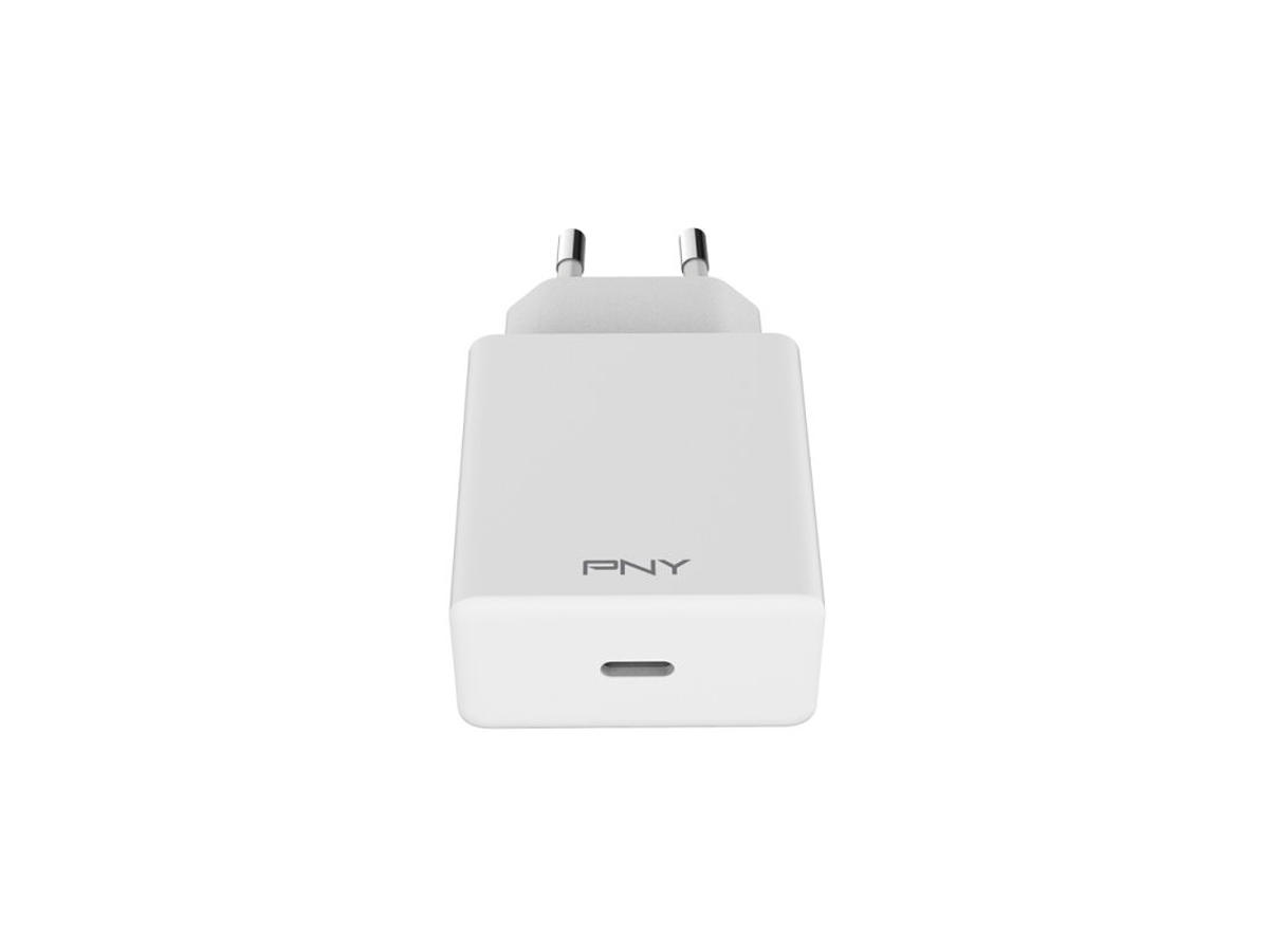 PNY P-AC-1TC-KEUPD20W-RB. Oplader type: Indendørs, Strømkilde type: Vekselstrøm, Oplader, kompabilitet: Universel, Antal USB type-C-porte: 1. Produktfarve: Hvid