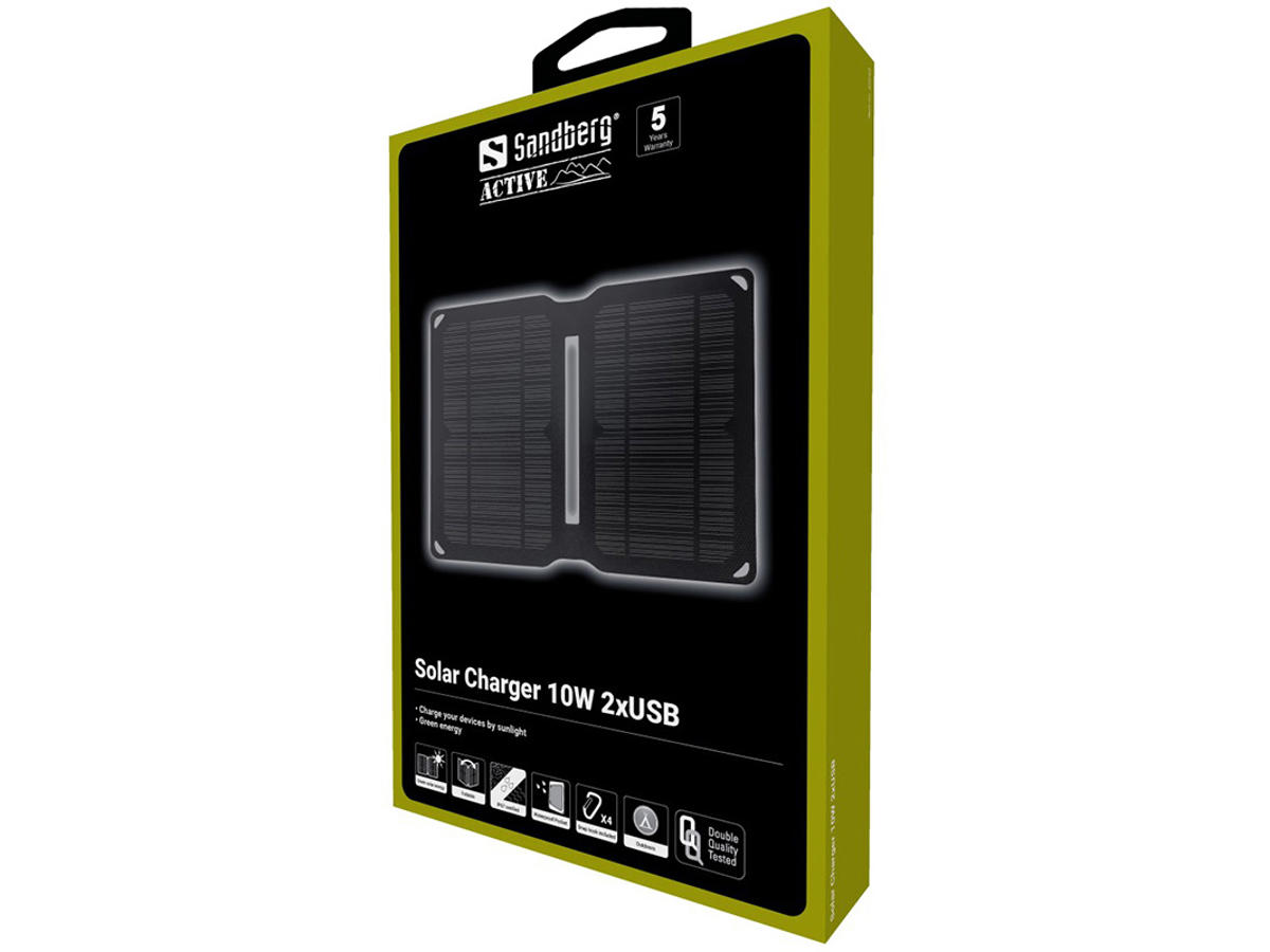 Sandberg Solar Charger 10W 2xUSB er et højeffektivt solpanel, der omdanner sollys til elektricitet. Det er udstyret med 2 USB udgange, som du kan bruge til opladning af dine USB enheder som f.eks. smartphone, tablet eller powerbank. Med en tilsluttet powerbank kan du gemme elektriciteten heri til en senere opladning af din smartphone, eller du kan bruge den som stabiliserende mellemled ved opladning (såfremt din powerbank understøtter strøm ind og ud samtidig). Solpanelet kan med de medfølgende karabinhager f.eks. hænges på din rygsæk, når du er på eventyr. Det er grøn energi til dit udstyr!
