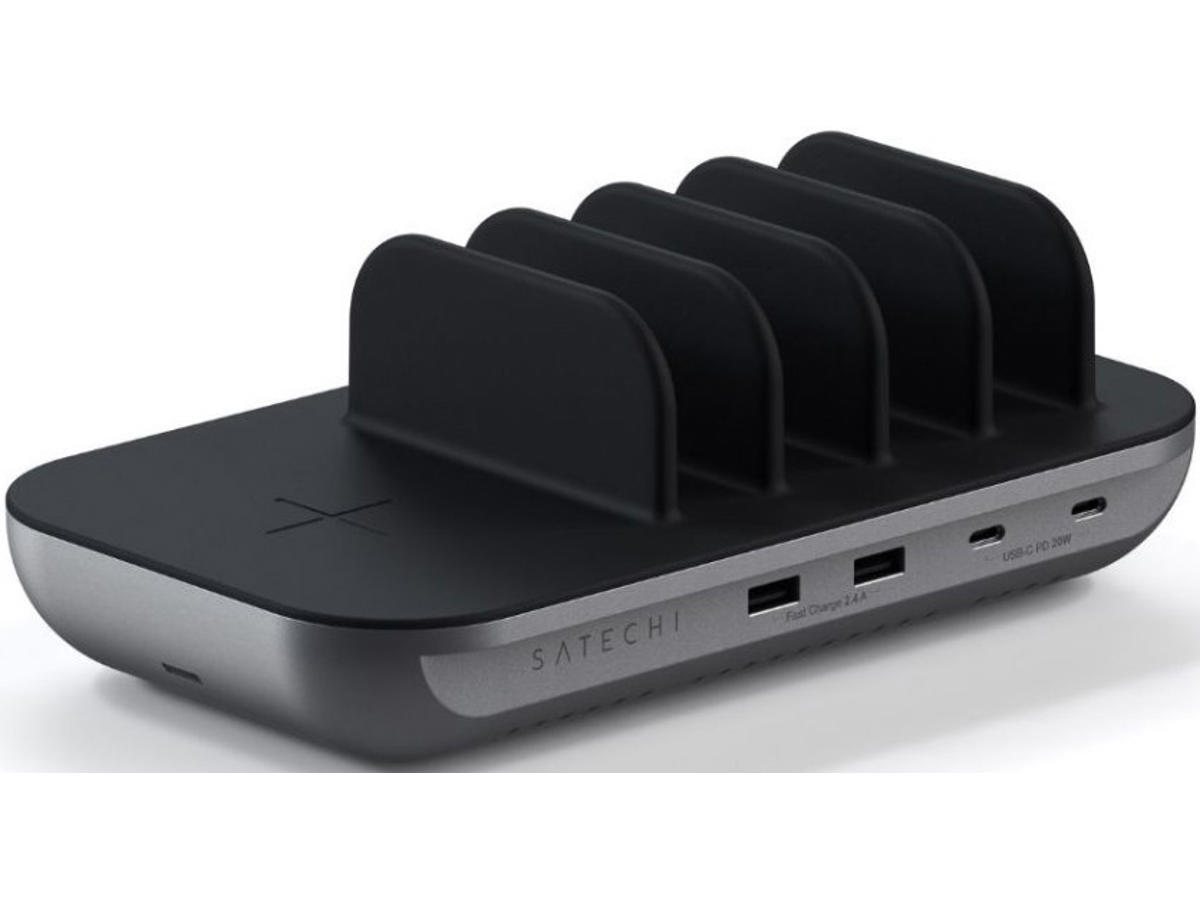 Satechi ST-WCS5PM-EU oplader til mobil enhed Hovedtelefoner, Smartphone, Tablet Sort, Grå Vekselstrøm Trådløs opladning Hurtig opladning Indendørs
