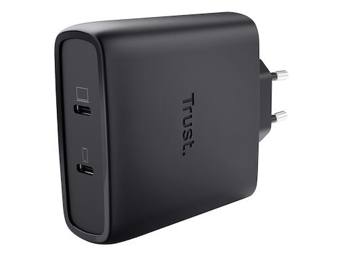 Trust Maxo. Oplader type: Indendørs, Strømkilde type: Vekselstrøm, Oplader, kompabilitet: Universel. Maksimal udgangsspænding: 20 V. Antal USB type-C-porte: 2, Hurtig opladning, Strømbeskyttelsesfunktioner: Overophedning, Overbelastning, Kortslutning. Kabellængde: 2 m, Produktfarve: Sort