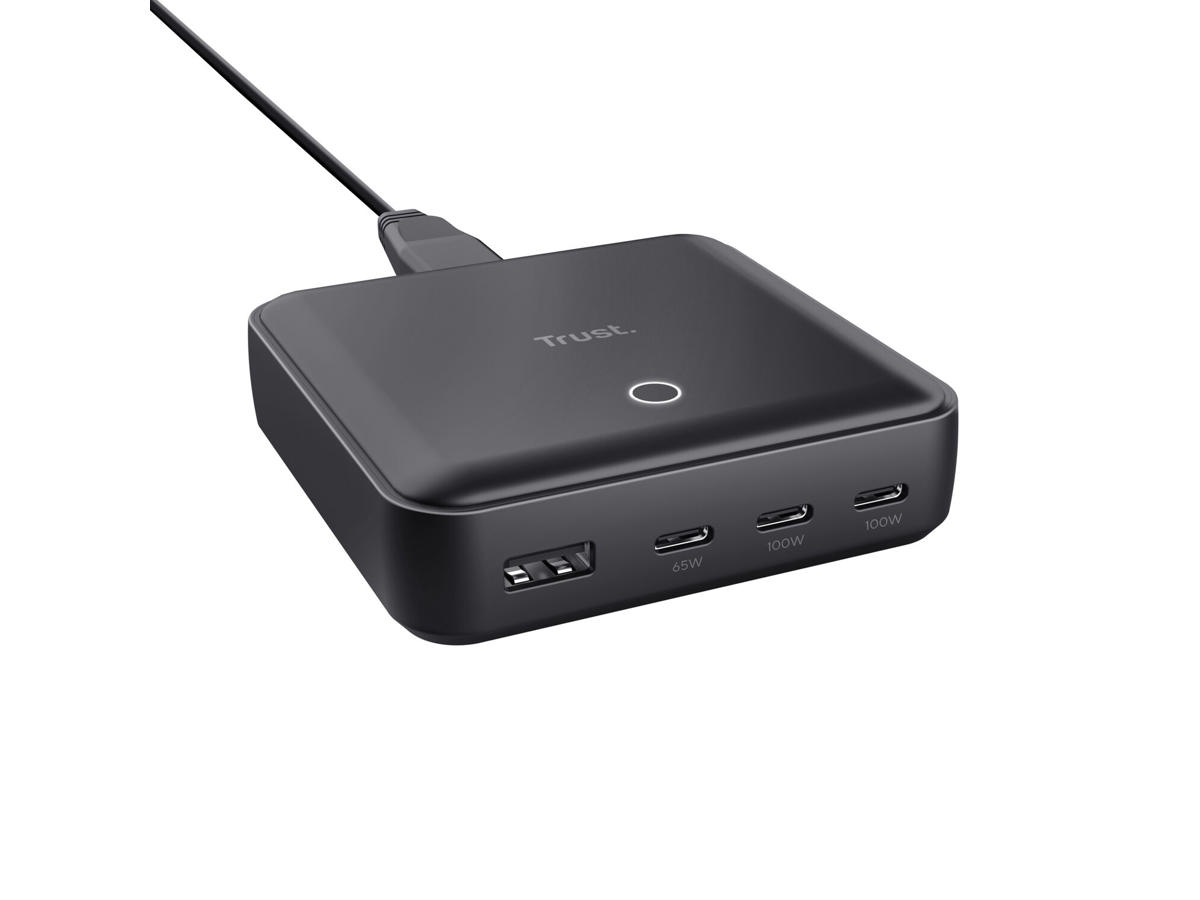 100W 4-port USB desktop charger designed to be easily placed on your desk, table, or cabinet