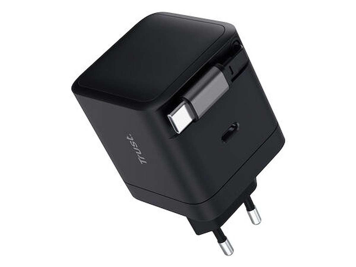 Trust Maxo. Oplader type: Indendørs, Strømkilde type: Vekselstrøm, Oplader, kompabilitet: Universel. Maksimal udgangsspænding: 20 V. Antal USB type-C-porte: 1, Hurtig opladning, Strømbeskyttelsesfunktioner: Overophedning, Overbelastning, Kortslutning. Kabellængde: 0,67 m, Produktfarve: Sort