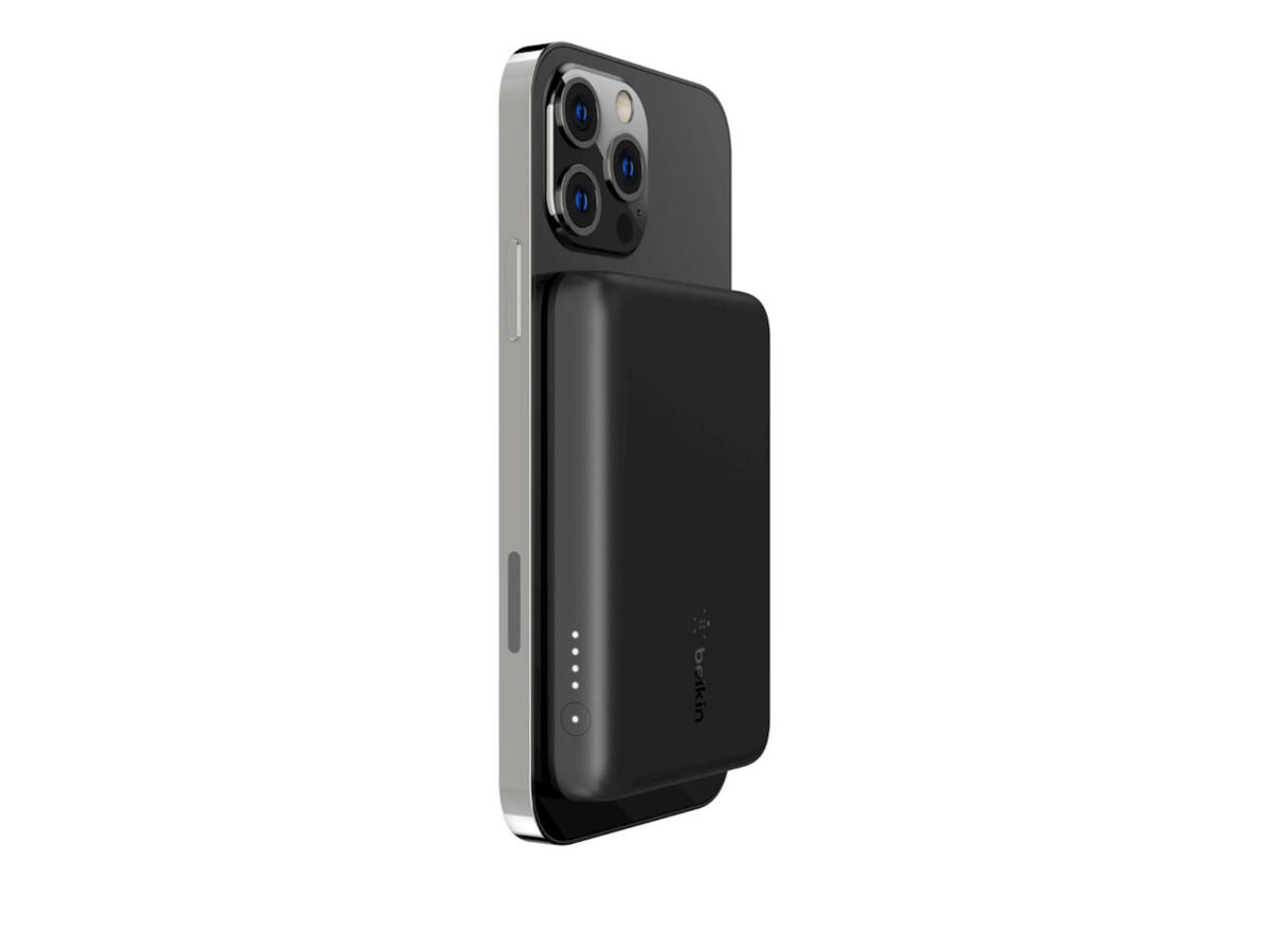 A wireless charging power bank that takes full advantage of MagSafe technology and won’t block the iPhone 12’s camera, so you can keep using your phone while it charges. Perfect for travel or commuting, this slim and portable charger provides a quick power boost anywhere you go. An LED light lets you know when the power bank needs recharging, and pass-through charging lets you keep charging your phone at the same time.