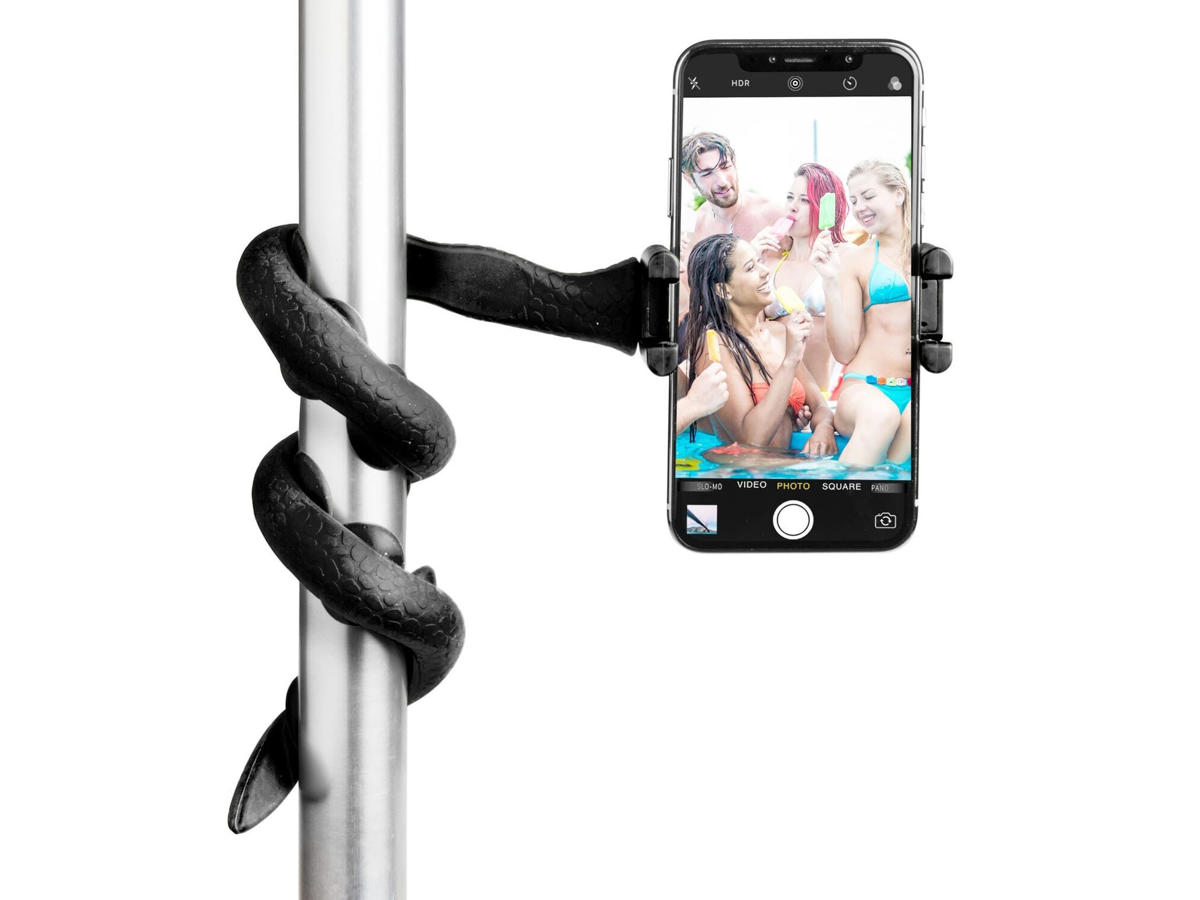 SNAKE is the flexible selfie stick you were looking for! Unique and 100% original, wrap it in the position you prefer and take the best pictures in every unusual situation. The ultra-flexible tentacle and the 10 maxi suction cups guarantee a secure grip with every shot you take. Use it with your smartphone thanks to the adjustable clamp (up to 8 cm), or use it with cameras and action cams thanks to 1/4'' thread. One accessory for a million uses: use SNAKE as a selfie stick, stand to watch movies, TV series and cartoons or as an anti-stress. Close the tentacle to always carry it with you in your bag, backpack or hand luggage.