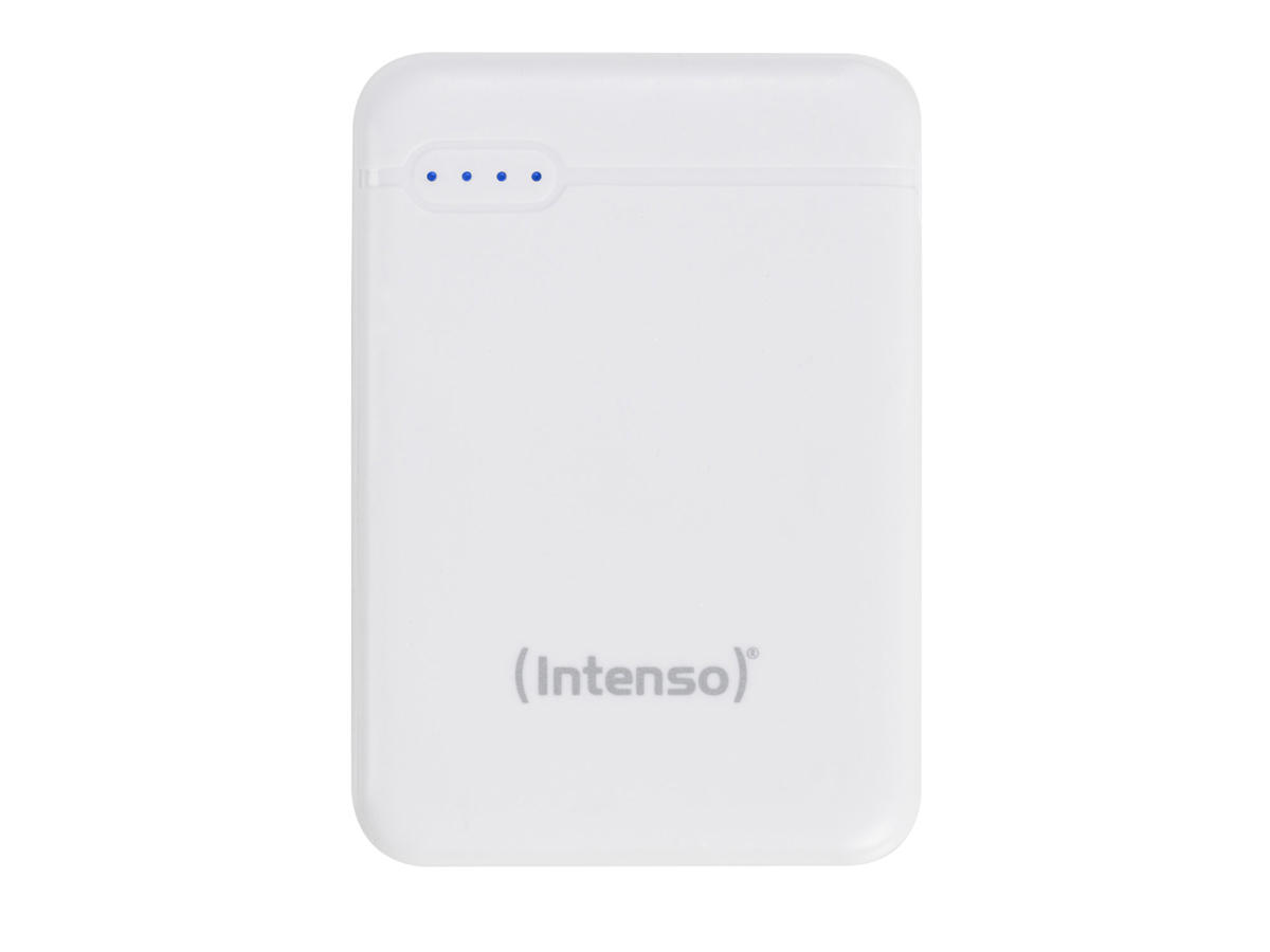 Intenso 7313522. Batterikapacitet: 5000 mAh, Batteriteknologi: Lithium polymer (LiPo). USB A udgangsporte: 1, Antal USB type-C-porte: 1. Udgangsstrøm: 2,1 A. Produktfarve: Hvid