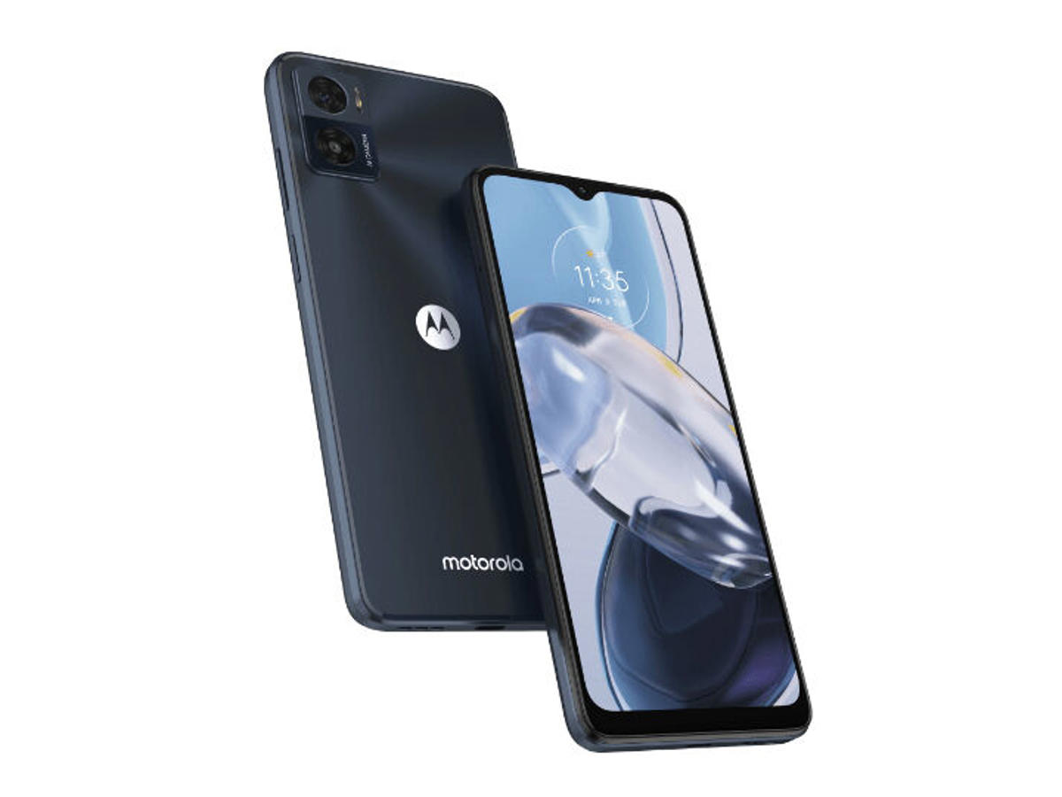 Motorola moto e22. Skærm diagonal: 16,5 cm (6.5"), Skærmopløsning: 1600 x 720 pixel. Processorserie: MediaTek, Processormodel: Helio G37. RAM kapacitet: 3 GB, Intern lagerkapacitet: 32 GB. Bagerste kamera opløsning (numerisk): 16 MP, Bagkamera type: Dobbelt kamera. SIM-korts kapacitet: Hybrid Dual SIM. Operativsystem installeret: Android 12. Batterikapacitet: 4020 mAh. Produktfarve: Sort. Vægt: 169 g