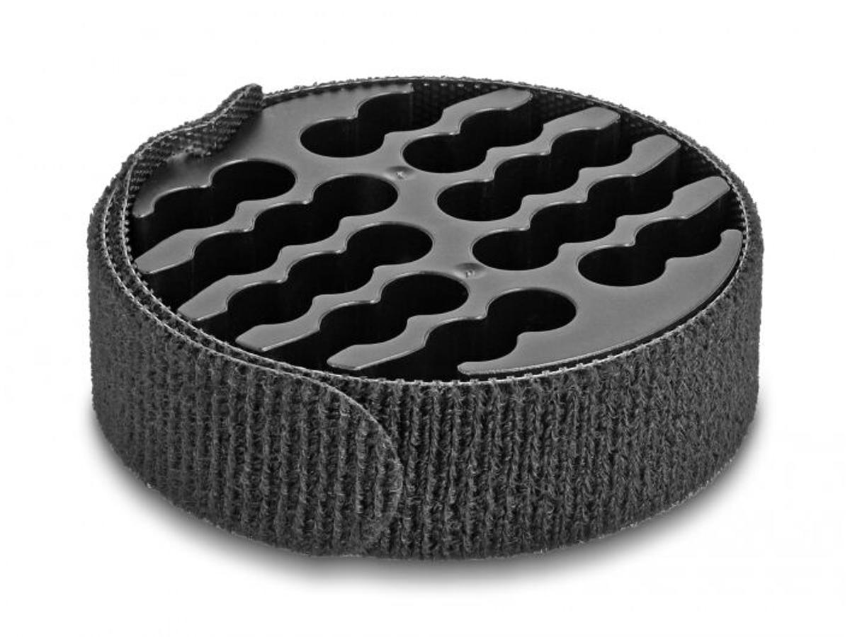 This cable organizer by Delock can be used to bundle 24 cables with a maximum diameter of 9 mm. In addition, the organizer has a hook-and-loop cable tie to hold the cables in place.