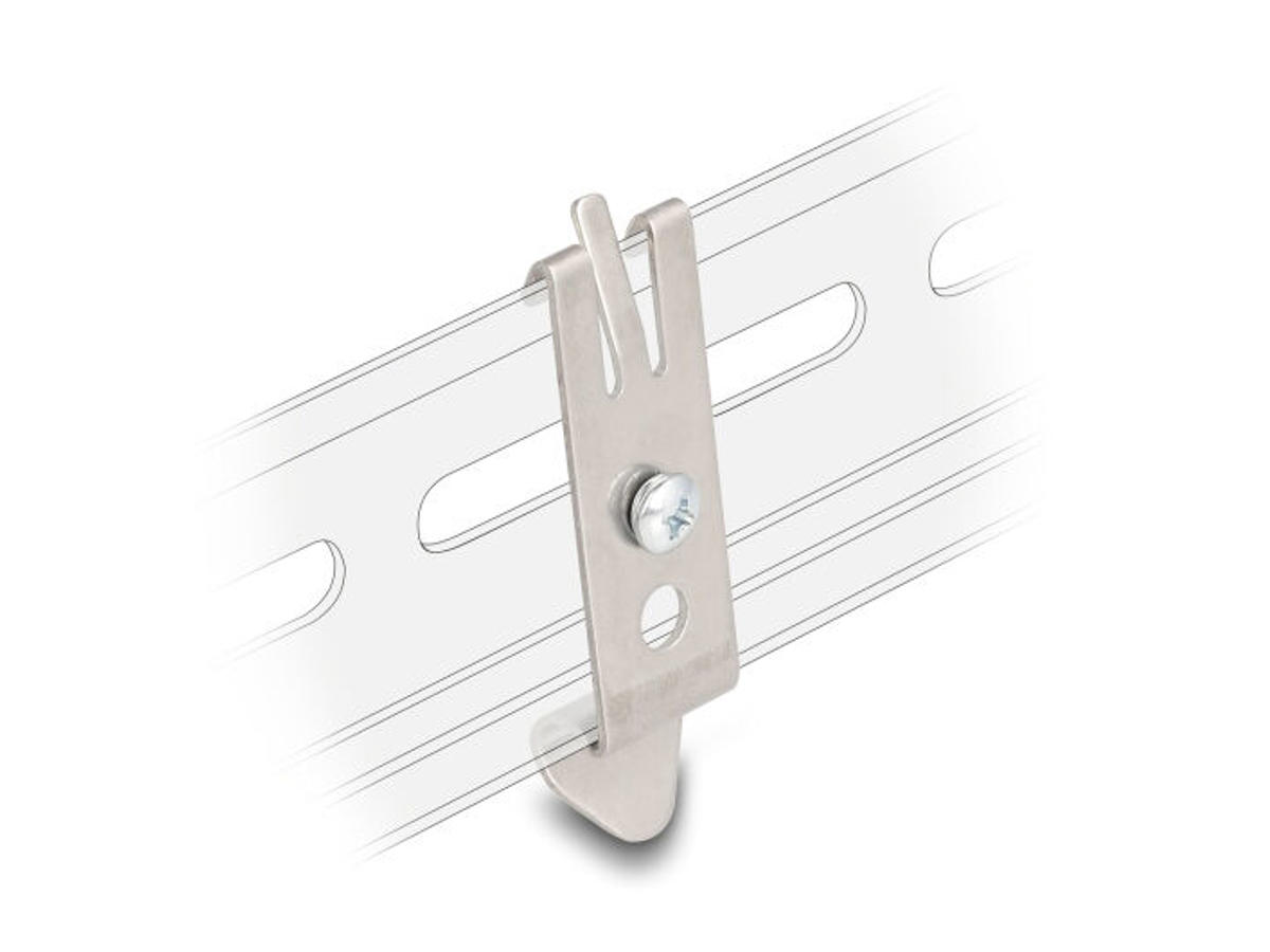 This holder by Delock can be used to mount e.g. a desktop patch panel or different network devices on a 35 mm DIN rail.
