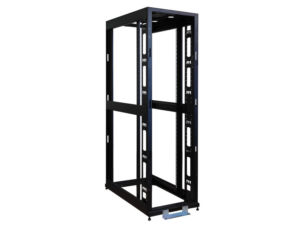 This SmartRack® 48U Standard-Depth 4-Post Premium Open Frame Rack has no doors and no side panels. The 'EXP' version is an expansion model used when several cabinets are bayed together. Its integrated baying tabs make it easy to combine multiple enclosures in rows for data center applications. This enclosure is also compatible with hot-aisle/cold-aisle configurations.