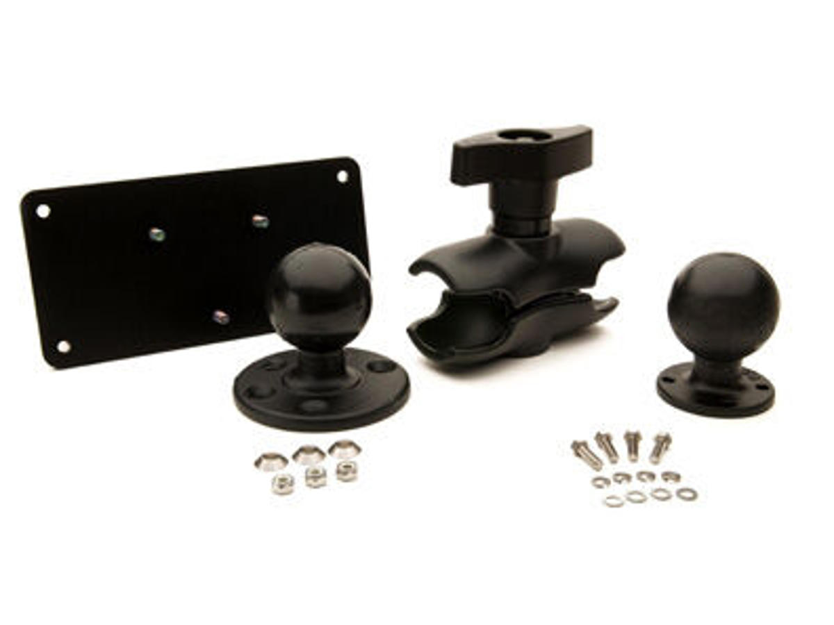 RAM mount kit; includes plate base, short arm, 128 mm (5 in), “D” ball for vehicle dock rear.
