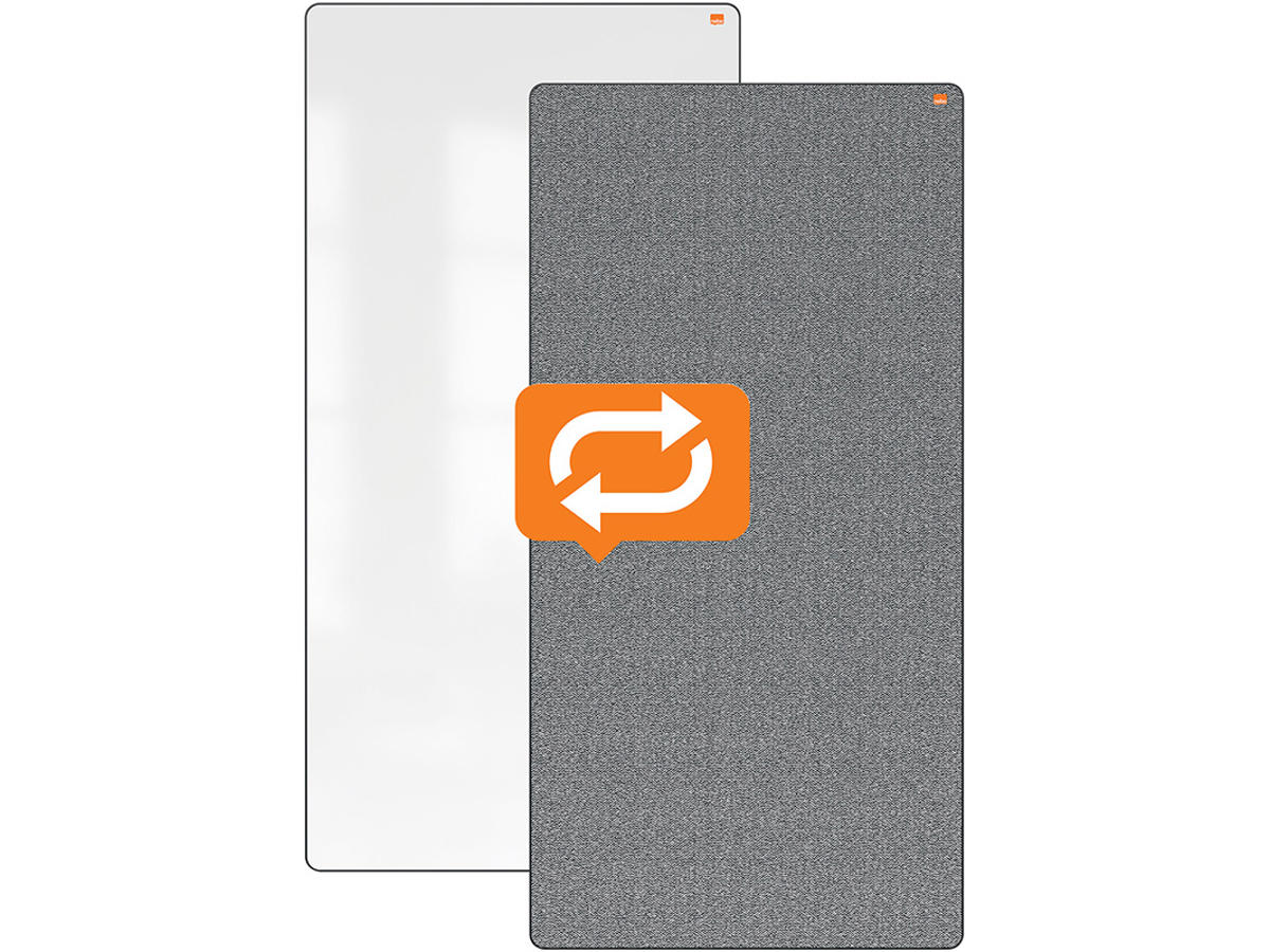 Move & Meet mobilt system til samarbejde tilbyder ultimativ fleksibilitet i ethvert arbejdsmiljø og kan nemt konfigureres til at passe perfekt til dine behov. Denne lette, bærbare, dobbeltsidede magnetiske whiteboardtavle og opslagstavle er den perfekte tilføjelse til systemet og giver dig ekstra skrive- og opslagstavleflader. Whiteboardet og opslagstavlen har et moderne og innovativt, buet hjørnedesign med soft touch sort kant, der passer til ethvert miljø. Tavlestørrelse 1800x900mm