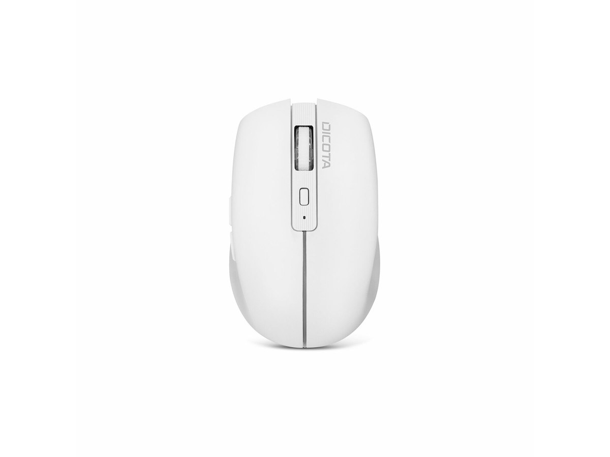 DICOTA D32044. Formfaktor: Ambidextrous. Enhedsgrænseflade: RF trådløs + Bluetooth, Bevægelsesopløsning: 1600 dpi, Knapper type: Trykte knapper, Antal knapper: 6, Rulle type: Hjul. Strømkilde: Batterier. Produktfarve: Hvid