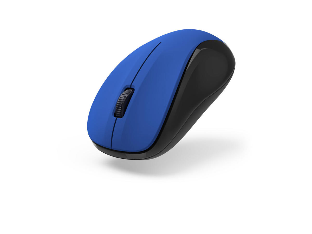 Hama MW-300 V2. Formfaktor: Ambidextrous. Bevægelsesdetekteringsteknologi: Optisk, Enhedsgrænseflade: RF trådløst, Bevægelsesopløsning: 1200 dpi, Knapper type: Trykte knapper, Antal knapper: 3, Rulle type: Hjul. Strømkilde: Batterier. Produktfarve: Sort, Blå