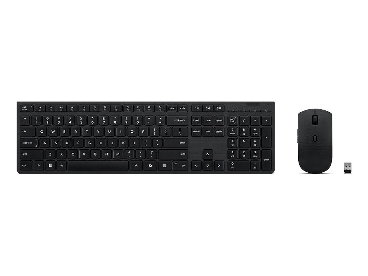 The Lenovo Professional Wireless Rechargeable Combo Keyboard and Mouse is a revolution in productivity and design. Its full-size keyboard features scissor switches that create an elevated typing experience and improves your working efficiency with specialized Microsoft Copilot Key. Its mouse, marvelously crafted from bio-rubber, keeps you comfortable all day and is equipped with an impressive 4,000 DPI sensor. Plus, both the keyboard and mouse are made from eco-friendly 65% recycled material that protects the environment.